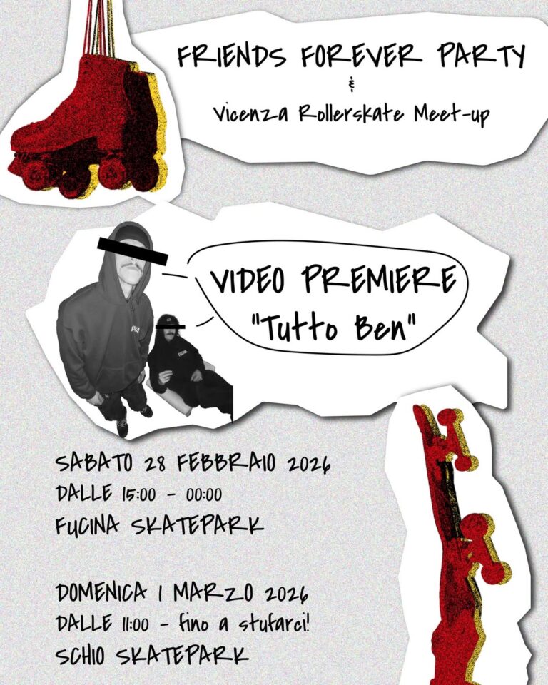 Followed by a Video Premiere: A preview screening of “Tutto Ben” – a video by @gabriele_crybaby & @tommaso_blazek (Filmed by Nicola). The park remains open to both rollerskaters and skateboarders until 10 PM.